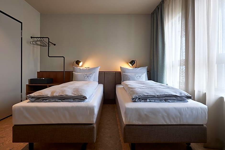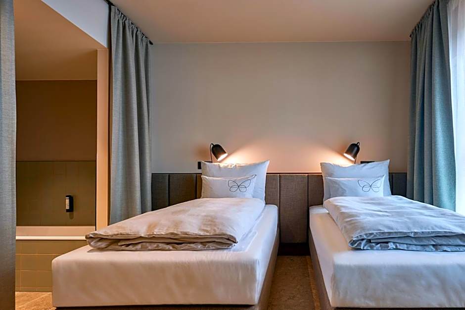This twin room features a seating area, cork flooring, Raindance shower, Full HD Smart-TV.